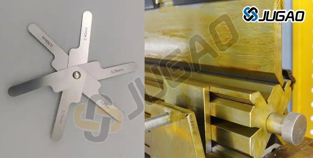 Mesurez et ajustez l'espace entre les matrices supérieure et inférieure en fonction de l'épaisseur et du type de matériau à plier. Le jeu optimal est déterminé en fonction des exigences de pliage spécifiques et doit être maintenu de manière constante pour garantir la précision du formage et la longévité de l'outil.