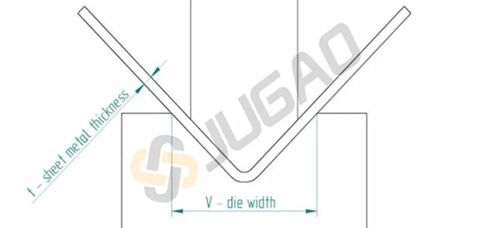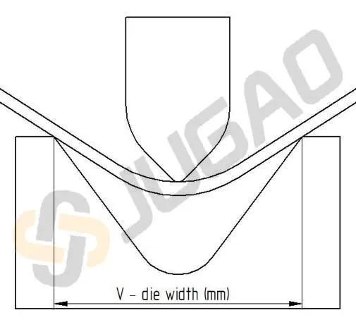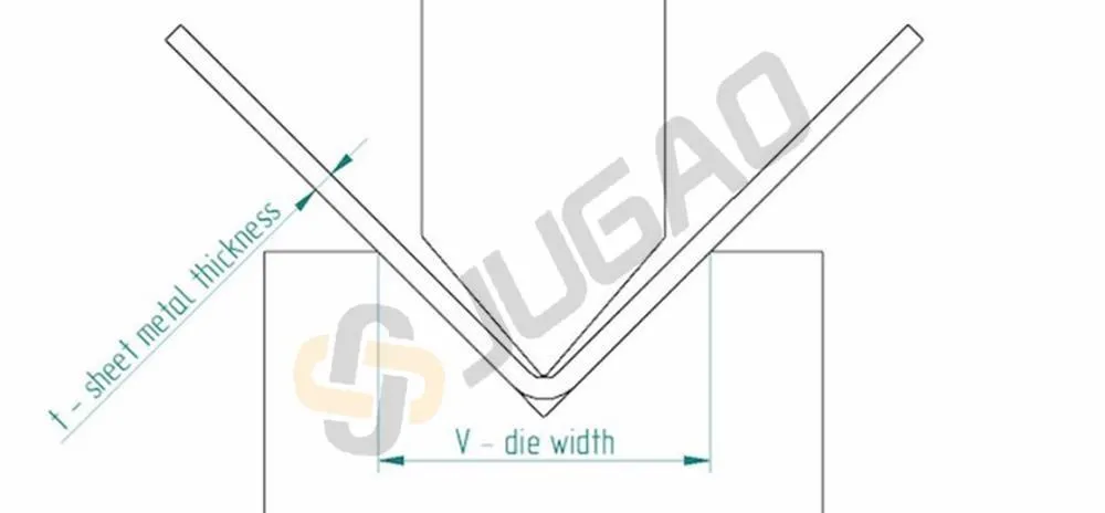 Dans ce processus, le poinçon applique une force en deux points sur la tôle au-dessus de l'ouverture de la matrice. Étant donné que la tôle n'entre pas en contact avec le fond de la matrice, une presse plieuse est généralement utilisée pour le pliage à l'air en V.