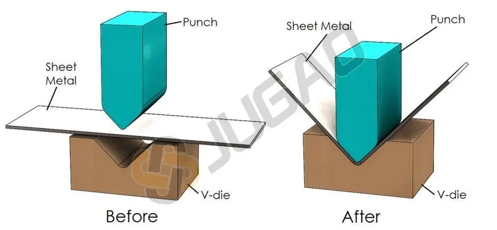 C'est la méthode de pliage la plus largement utilisée, applicable à la majorité des projets de pliage. Elle utilise un poinçon et une matrice en forme de V pour former la tôle à l'angle souhaité. Pendant le processus, le poinçon presse la tôle dans la matrice en V.